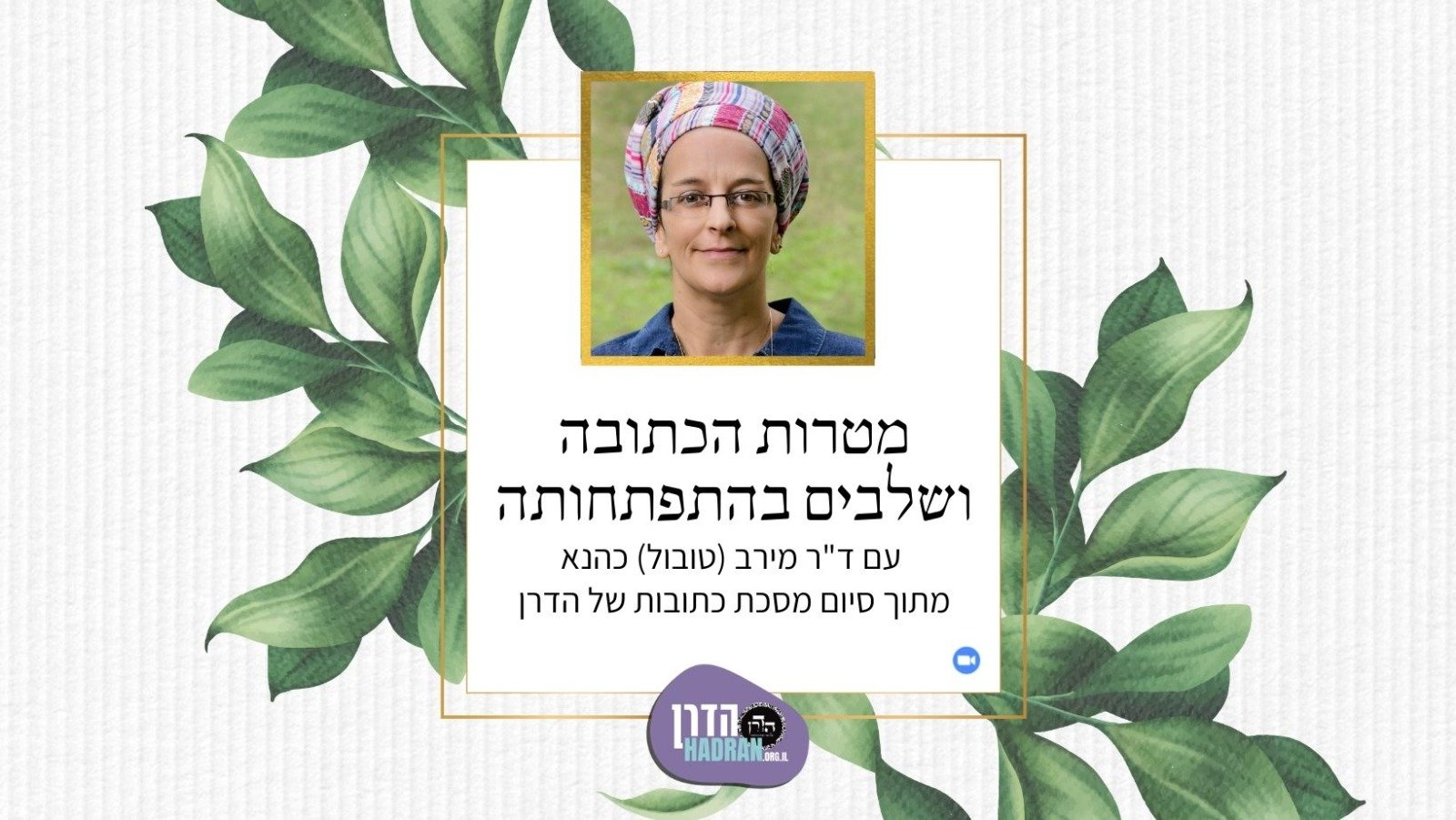 הרבנית ד”ר מירב (טובול) כהנא היא ראש תכנית מתיבתא במדרשה בבר אילן; מלמדת גמרא והלכה; יועצת הלכה מטעם נשמת; חוקרת של לשון חז”ל