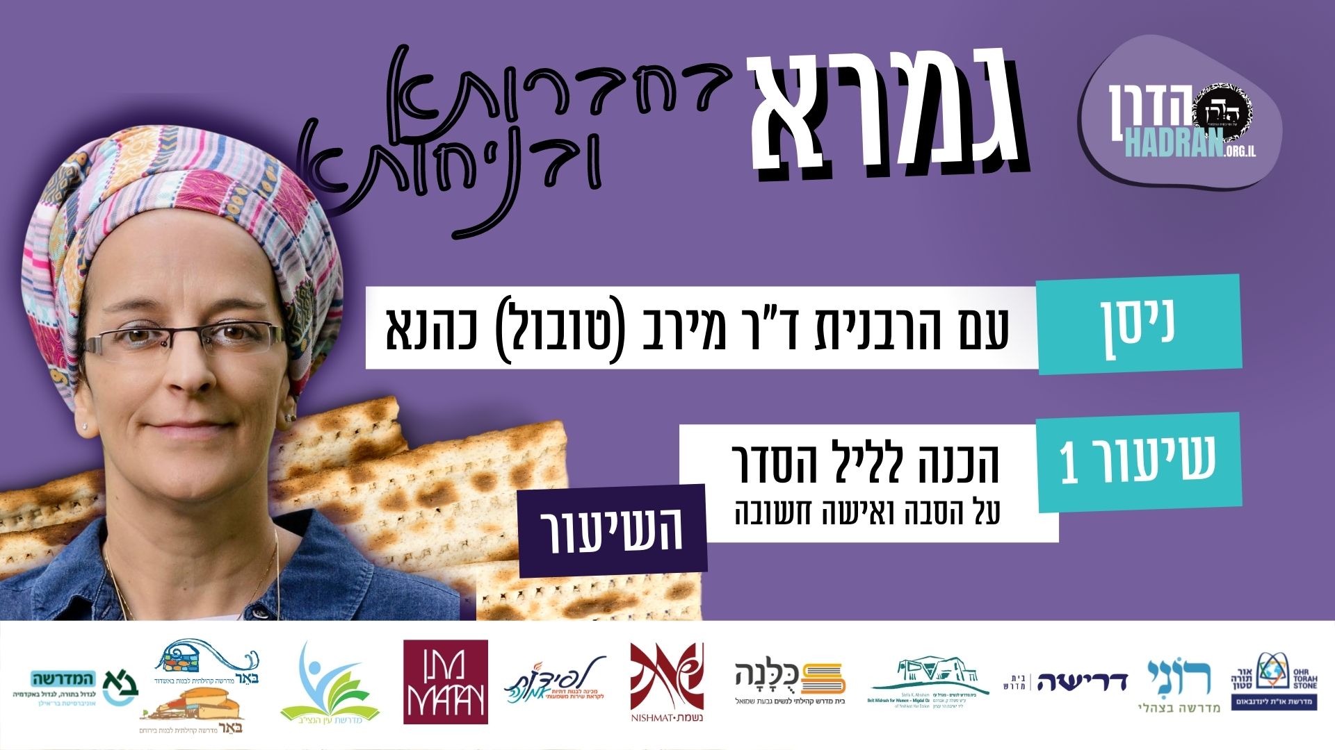 הכנה לליל הסדר: על הסבה ואישה חשובה- סוגיות נבחרות (ניסן שיעור א)